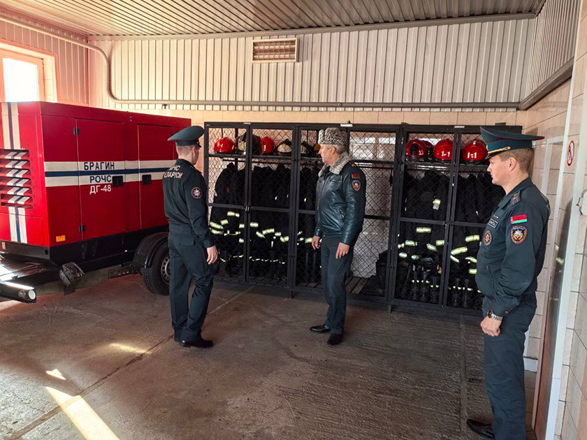 После общения с трудовым коллективом Сергей Дичковский посетил подразделения Брагинского районного отдела по чрезвычайным ситуациям. Он осмотрел боеготовность пожарно аварийно-спасательной части № 1и № 2, пообщался с работниками, обсудил текущие задачи и планы по повышению уровня безопасности в районе.