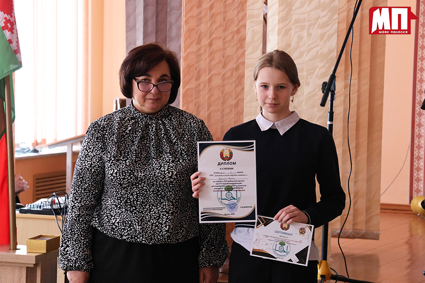 Награды победителям конференции вручила главный специалист отдела образования райисполкома Валентина Кондратюк. Диплом III степени получил учащийся Маложинской школы Егор Комар, II степени – Ксения Удачина из Хракович. Первое место заняла учащаяся гимназии г.п. Брагина Алеся Соболева.