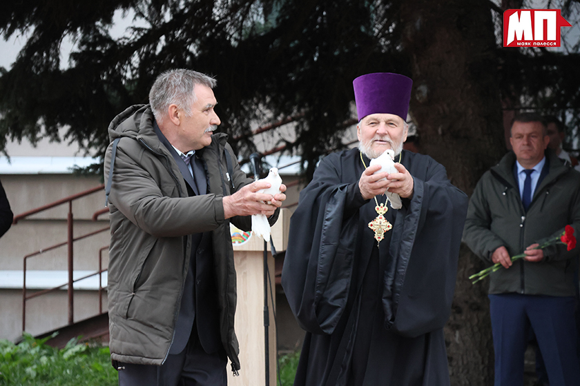Он подчеркнул, что наш район, один из наиболее динамично развивающихся в республике до аварии на ЧАЭС, принял на себя самый сильный удар: более 60 процентов его территории оказались под угрозой радиоактивного загрязнения. В десятки населённых пунктов не вернулись люди. Девять из них захоронены. Тысячи семей навсегда покинули родные очаги. Из использования было выведено более 85 тысяч гектаров земли. Но благодаря самоотверженному труду ликвидаторов – рабочих, учёных, строителей, военнослужащих – удалось локализовать и остановить распространение бедствия. Многие из них ушли в вечность…